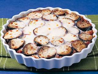 材料:なすび、じゃがいも、オリーブオイル、塩・胡椒、玉ねぎみじん切、にんにくみじん切、合挽ミンチ