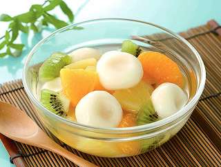 材料:白玉粉、絹豆腐、キウイ、フルーツミックス、レモン果汁