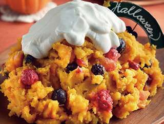 材料:ベリーミックス、かぼちゃ、さつまいも、プレーンヨーグルト、はちみつ