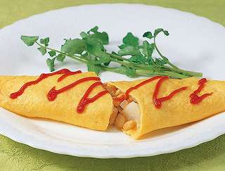 材料:大豆水煮、じゃがいも、洋人参、玉ねぎ、サラダ油、塩、胡椒、卵、片栗粉、サラダ油、トマトケチャップ、クレソン