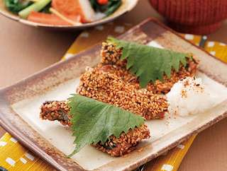 材料:さんま蒲焼、金いりごま、七味唐辛子
