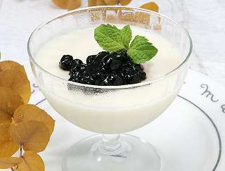 材料:豆乳、練乳、ゼラチン、水、ブルーベリージャム、ミントの葉