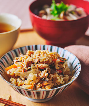野菜をたくさん使った、炊き込みご飯と汁ものの献立