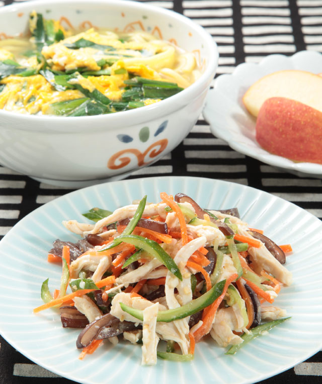 おろし大根があっさりと仕上げた鶏ささみの煮物に小松菜の和え物を合わせたヘルシーな献立です。