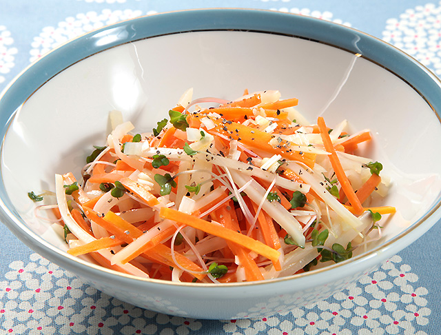せん切り野菜のシャキシャキ食感を楽しむサラダです。