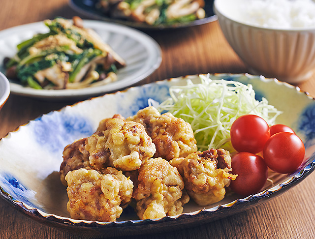 (1)豚肉にAをもみ込み、30分以上おく。8等分にして丸め、小麦粉を薄くまぶす。(2)Bで衣を作り、(1)をくぐらせて170℃の油で揚げる。(3)器に(2)を盛り、キャベツとトマトを添える。※調理時間に下味をつける時間は含みません