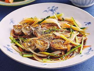 材料:あじ、玉ねぎ、きゅうり、みょうが、青じそ